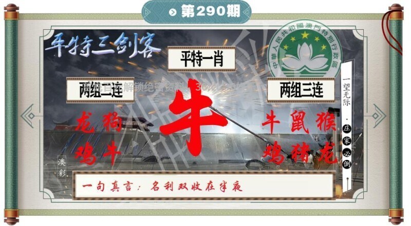 291期:家野三肖【野兽+马牛猪】开狗44错 |