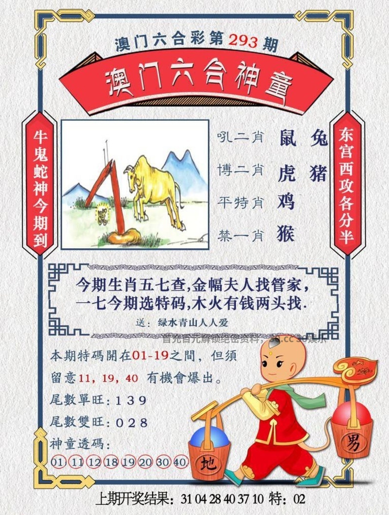 293期:【鼠猴羊鸡马兔牛龙虎】开:羊47中 |